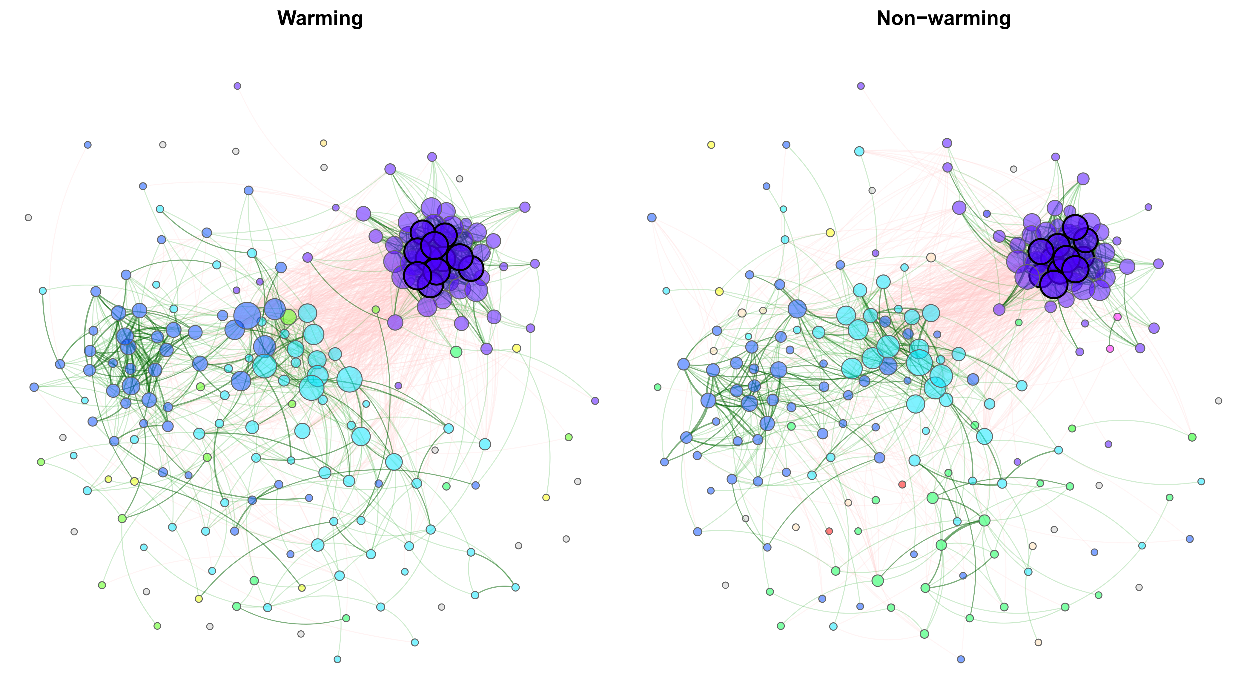 Exemplary network comparison using soil microbiome data (‘soilrep’ data from phyloseq package). Microbial associations are compared between the two experimantal settings ‘warming’ and ‘non-warming’ using the same layout in both groups.